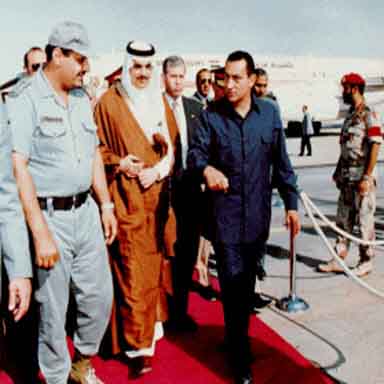 قبل أسابيع قليلة من المعركة وصل الرئيس محمد حسني مبارك ليتفقد القوات المصرية في الخطوط الأمامية من مسرح العمليات. كنت وصاحب السمو الملكي الأمير محمد بن فهد، أمير المنطقة الشرقية، في استقبال فخامته.