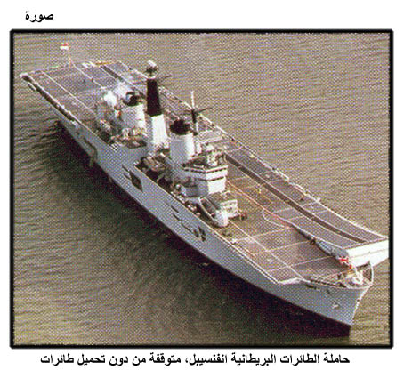 حاملة الطائرات البريطانية انفنسيبل متوقفة من دون تحميل طائرات