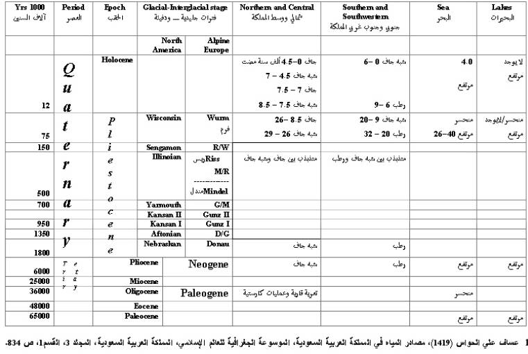التأريخ المناخي لشبة الجزيرة العربية (الأرقام بآلاف السنوات)