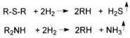 بالإضافة إلى التفاعلات السابقة تجري أيضاً، أثناء عملية الإصلاح الحفزي، تفاعلات هدرجة المركبات الكبريتية والنتروجينية.