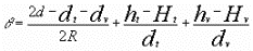 R =   نصف قطر الكرة الأرضية المؤثر، وهو دالة في معامل الانكسار. وتستخدم وحدات القياس نفسها للمسافات والارتفاعات.