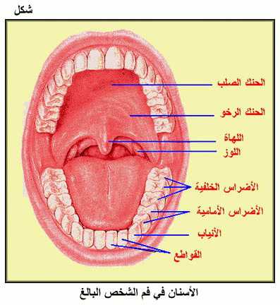 الأسنان في فم الشخص البالغ