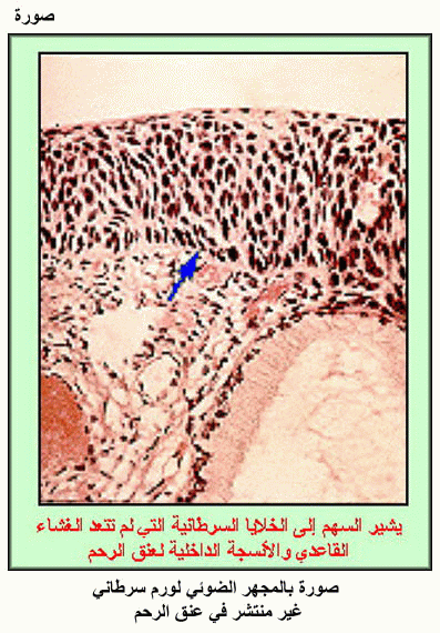 صورة بالمجهر الضوئي لورم سرطاني غير منتشر في عنق الرحم