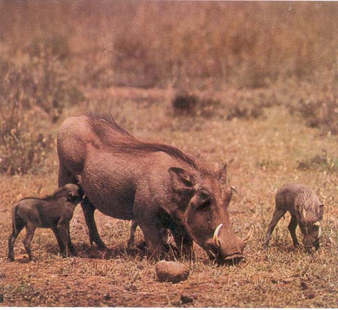 الخنزير البري، يعيش في المروج المكشوفة، ويعتمد على الماء