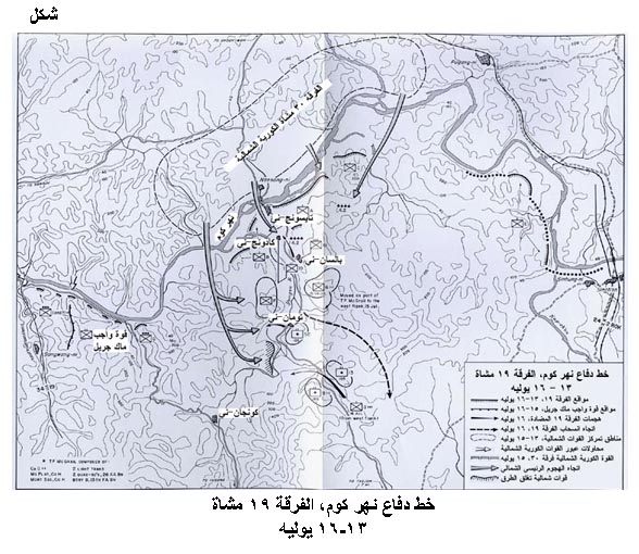 خط الدفاع عن نهر كوم، الفرقة 19 مشاة 13-16 يوليه