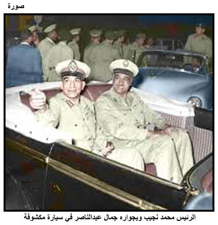 الرئيس محمد نجيب وبجواره جمال عبدالناصر في سيارة مكشوفة