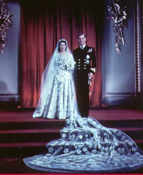 الأميرة إليزابيث ودوق أدنبرة، في غرفة العرش في فصر باكنجهام يوم الزفاف، 20 نوفمبر 1947