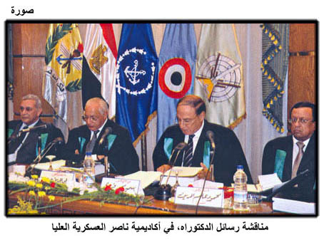مناقشة رسائل الدكتوراه، في أكاديمية ناصر العسكرية العليا
