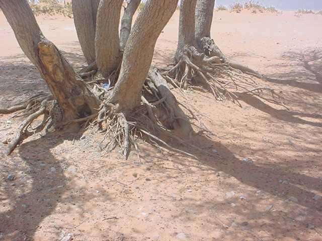 ظهور المجموع الجذري على السطح في الأشجار الصحراوية