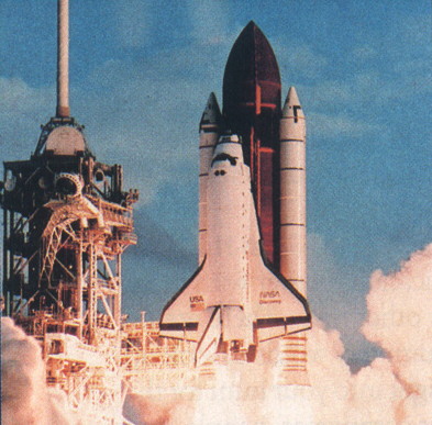 المكوك ديسكفري ينطلق حاملاً القمر ماجنوم إلى مداره