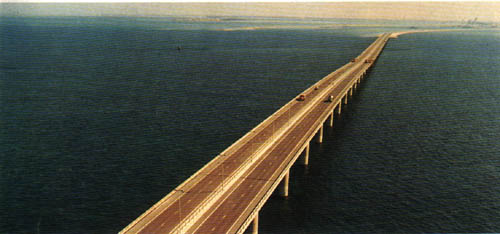 بداية جسر الملك فهد، من المملكة العربية السعودية