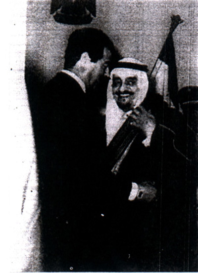 صورة الرئيس العراقي صدام حسين، مقلداً الملك فهد بن عبدالعزيز، وسام الرافدين من الدرجة الأولى، من النوع المدني في 25 مارس 1989