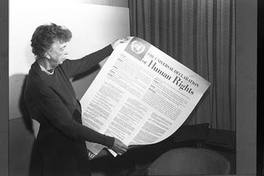 إلينور روزفلت تمسك بالإعلان العالمي لحقوق الإنسان