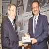 الأمير خالد يُسلم غسان شربل هدية تقديراً للعاملين