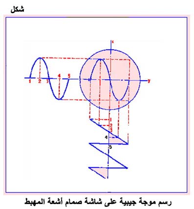 رسم موجه جيبية على شاشة صمام أشعة المهبط
