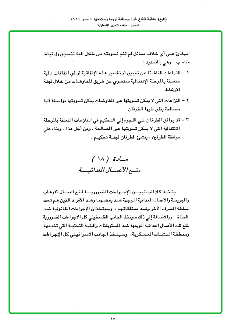 معاهدة السلام: فلسطين/إسرائيل (18) |